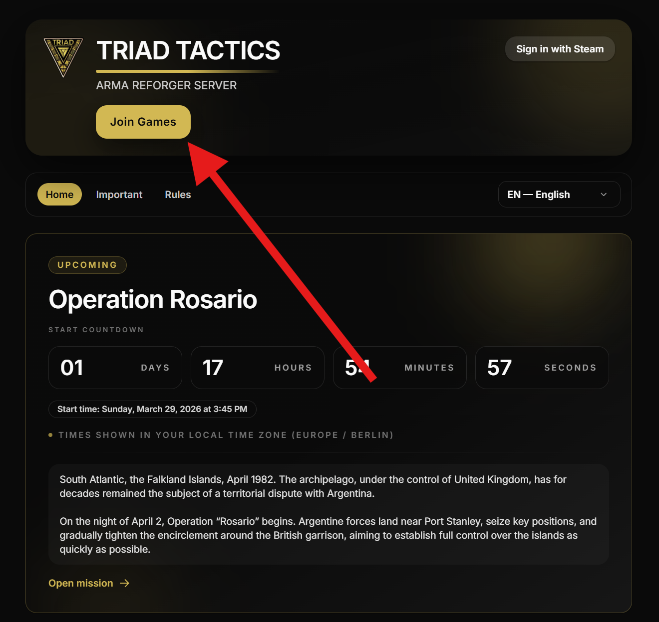 To get started, you need to own Arma Reforger on Steam. Visit the Triad Tactics website and sign in with your Steam account. After signing in, you will be directed to the application form